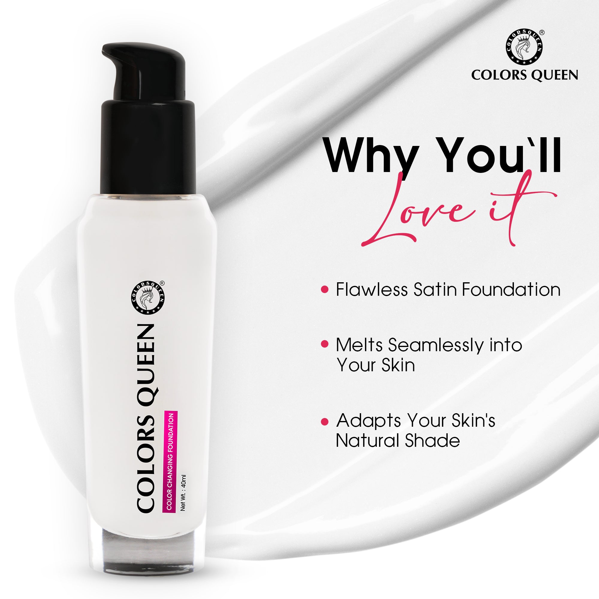 The majority of the time, we truly search for things that appear new and unusual. However, we are here to help you create something that truly excites you: Colors Queen Color Changing Foundation, with its transformative power, has evolved into a beauty essential for a flawless complexion. This foundation's formula is easily blendable, adapting to your skin tone for a seamless, natural look with long-lasting wear that keeps you radiant throughout the day. While the foundation is easily applied and leaves skin with a flawless satin finish, its hydrating effect ensures that skin remains moisturized. You look confident, as we stated, and that is something you can achieve with us.