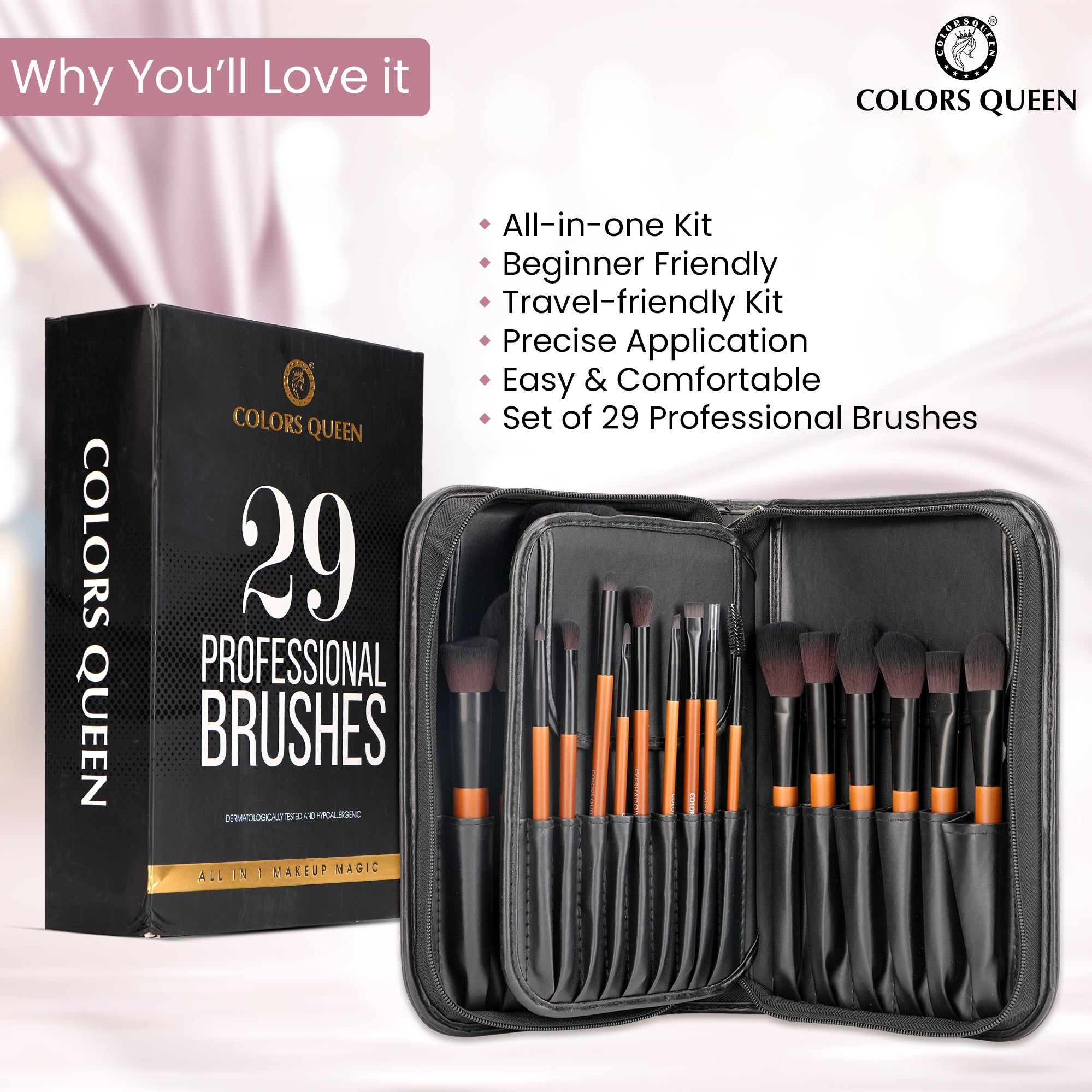 Love, are you wearing makeup? Do you enjoy applying makeup with brushes? A full-size brush set has been developed by Colors Queen. Now, up the level of your beauty routine by purchasing this broad range that includes 15 eyeshadow brushes and 14 face brushes, including must-have items like the Blushers Brush, Contour Brush, and Foundation Blending Brush. The soft and fluffy bristles provide a soft and comfortable application, resulting in a seamless blend that highlights your natural beauty. This complete brush set, designed for both accuracy as well as versatility, allows you to create a wide range of looks with ease. These brushes are made to blend your face effortlessly, producing a flawless appearance every time, regardless of your level of makeup expertise.