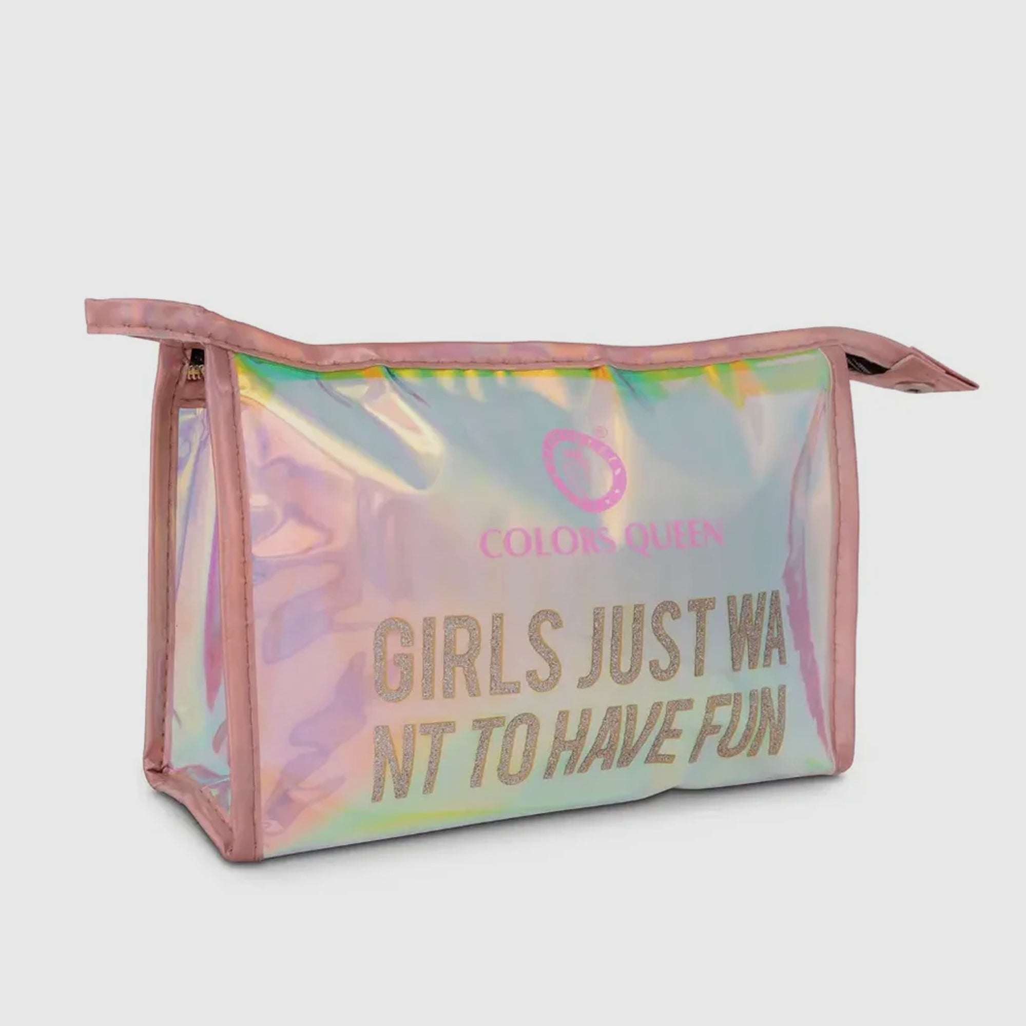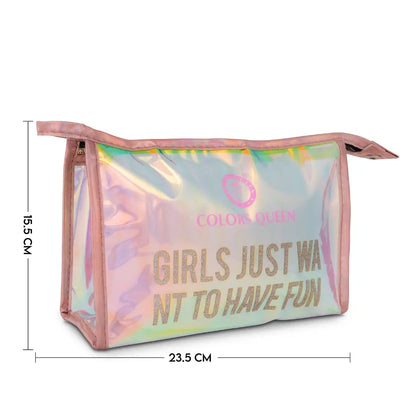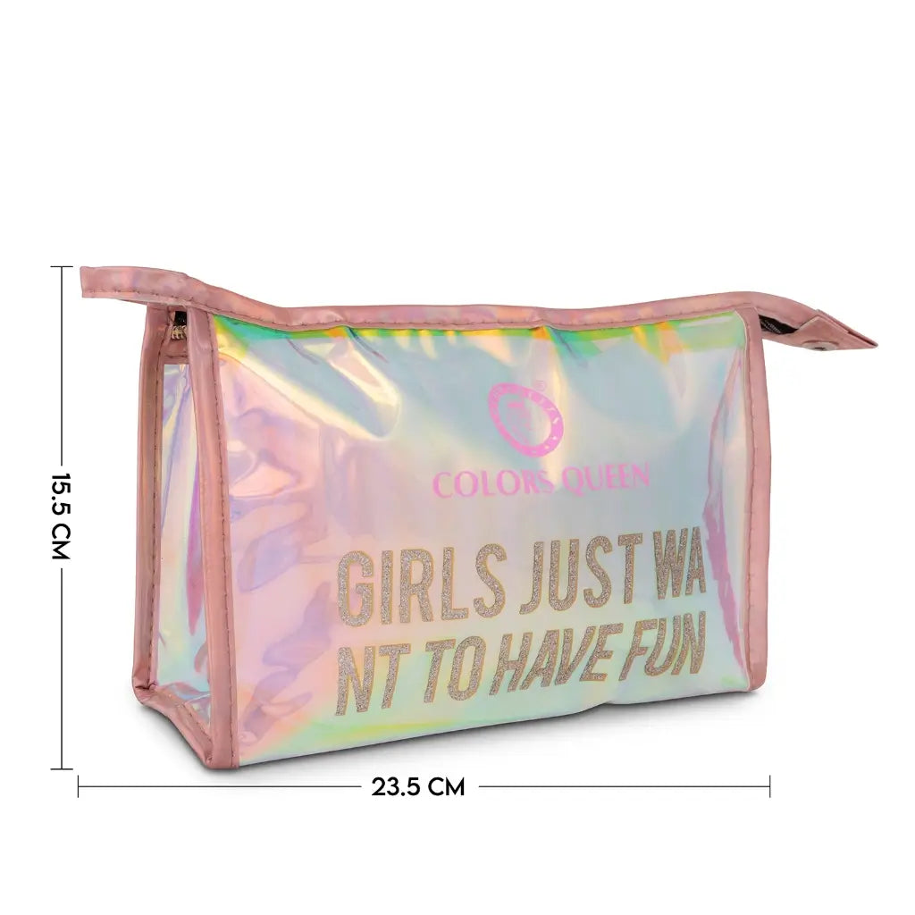 Get super organized with the Colors Queen Makeup Pouch. It's made to be really useful. It has a good amount of space for your stuff, like makeup, accessories, and brushes. This futuristic metallic makeup bag will keep your makeup collection look classy and shiny. All three shades look really nice and girly. Inside, there's lots of space for your beauty stuff. It's strong, and the zipper won't break easily. Whether you're on a trip or just fixing your purse, this makeup bag is a must for everyone.
