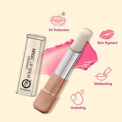 Experience the wonders of Colors Queen Magic Lip Balm. Get healthy, even-toned lips with Colors Queen's Organic Magic Lip Balm. The formula is enriched with lip-loving ingredients that work to reduce pigmentation and promote a smooth, even texture. The ultra-moisturizing oils in the balm help to hydrate and soothe inflamed lips, while natural antioxidants protect against radical damage. With every use, your lips will feel softer, smoother, and more nourished. Try Colors Queen's Organic Magic Lip Balm today and experience the magic for yourself. Allow the transformative properties of Colors Queen’s Organic Lip Balm to unveil the true radiance of your lips.